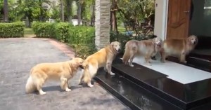 Hun hører en lyd utenfor døren. Når hun ser ut? Følg nøye med på hundene!